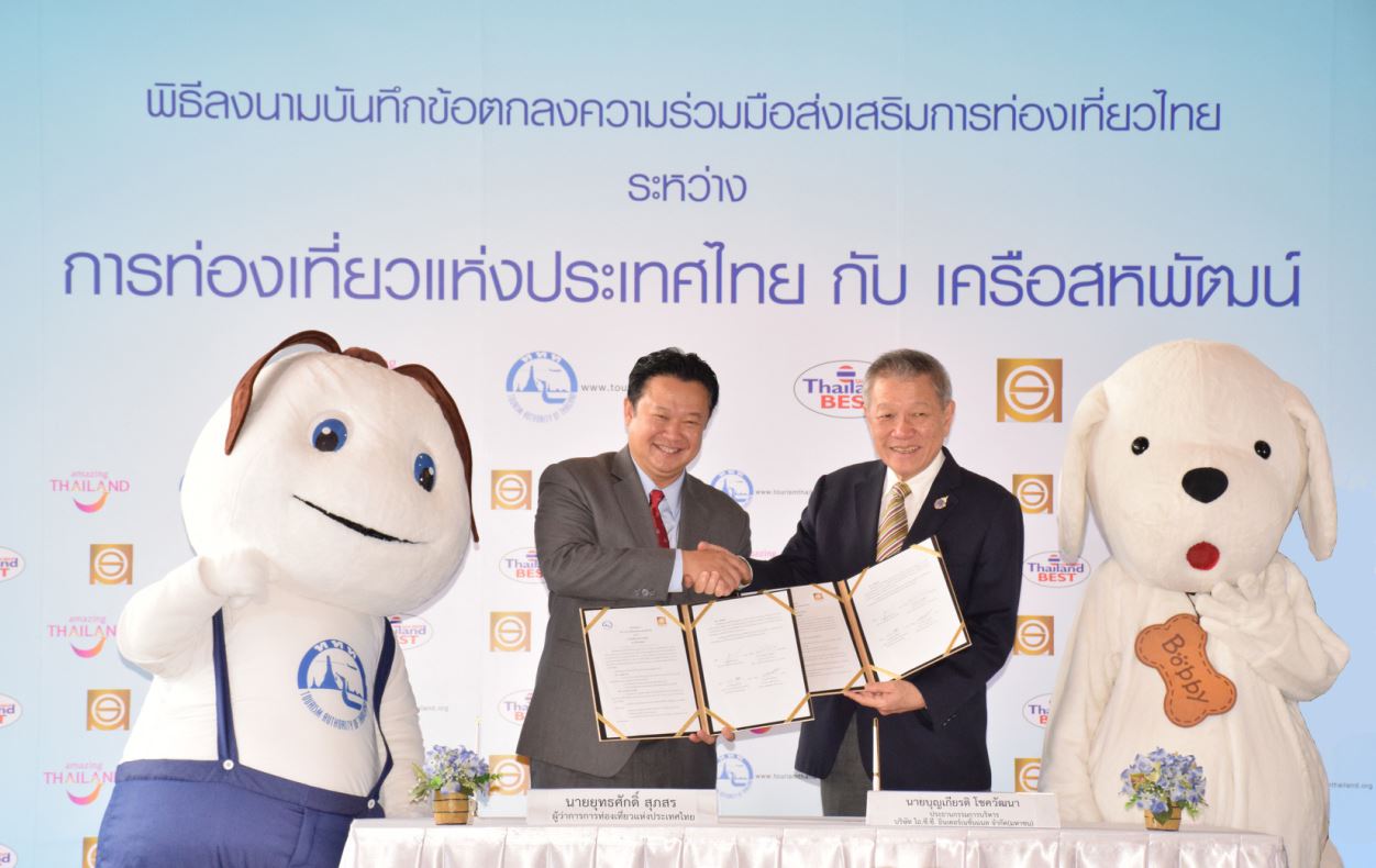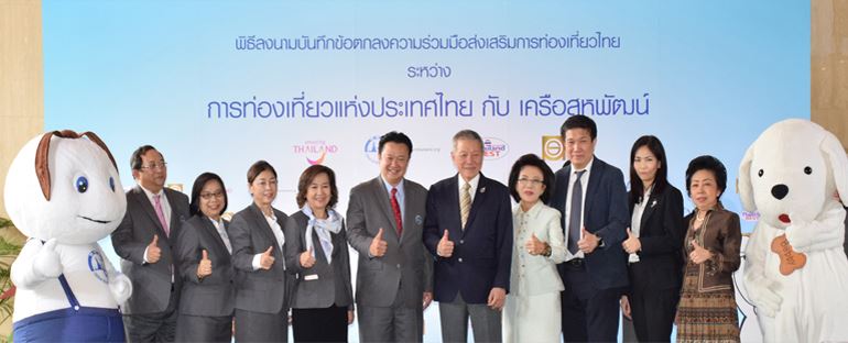 On 29 March 2016, there was an official signing ceremony for MOU on Thai-Tiew-Thai Tourism Promotion between the Ministry of Tourism of Thailand through Mr. Yuthasak Supasorn, Governor of the Tourism of Thailand, and Saha Group through Mr. Boonkiet Chokwatana, Chairman of the Executive Board of I.C.C. International PCL., one of Saha Group's companies on the 1st floor at the Ministry of Tourism Headquarter. This was witnessed among the management team of Saha Group, namely Mr. Vathit Chokwatana (Vice President and Executive Director at Sahapathanapibul PCL.), Mrs. Teerada AmBhanwong (Managing Director and Chief Executive Officer at O.C.C. PCL.), Mr. Petch Paniangvait (Chief of Business Developement at Thai President Foods PCL.), Mrs. Jidapa Kittinanthapanya (Managing Director of H&B Intertex Co.,Ltd.) and the Ministry of Tourism of Thailand.