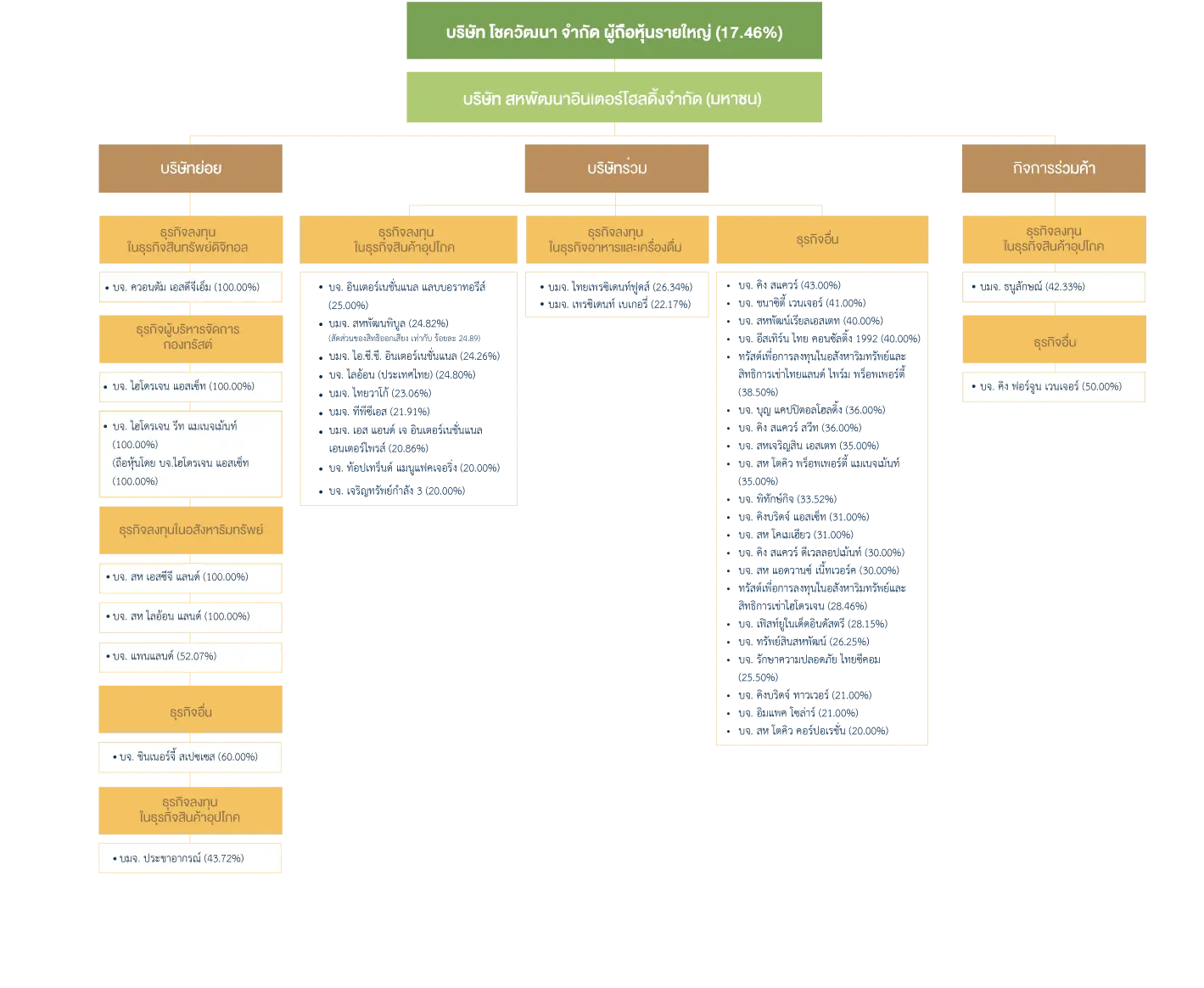 บริษัทฯ มี การถือหุ้นในบริษัทย่อย 8 บริษัท บริษัทร่วม 32 บริษัทและกิจการร่วมค้า 2 บริษัท สัดส่วนของสิทธิออกเสียงเป็นไปตามสัดส่วนการถือหุ้น แยกตามสายธุรกิจ ได้ดังนี้